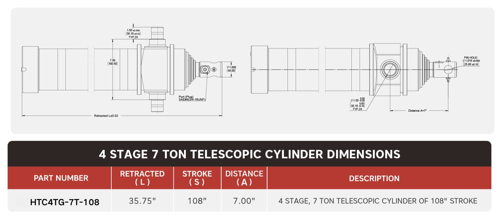 "HTC4TG-7T-108", 4 Mərhələli, 7 Ton 108" Vuruşlu Teleskopik Silindr