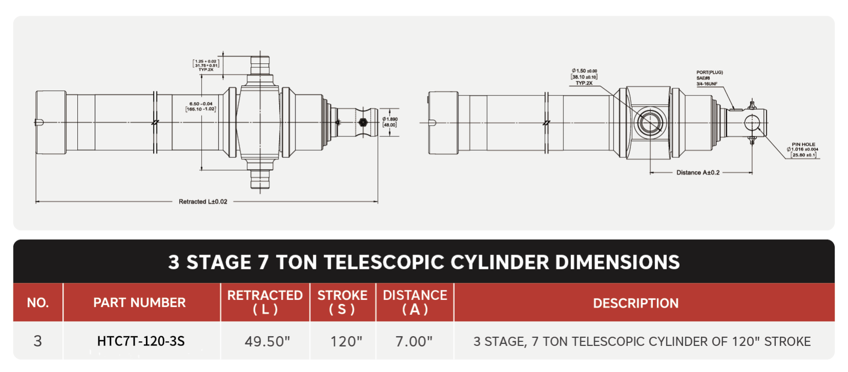 "HTC3TG-7T-120", 3 Mərhələli, 7 Ton 120" Vuruşlu Teleskopik Silindrlər