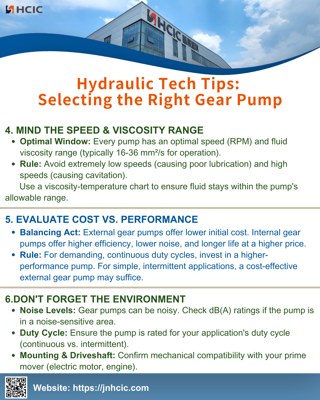 Qayda: Tələb olunan, davamlı vəzifə dövrləri üçün, daha yüksək performanslı nasosa investisiya qoyun. Sadə, aralıq tətbiqetmələr üçün, səmərəli xarici dişli pompozu kifayət edə bilər.